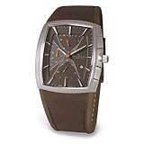 Classic styling and contemporary aesthetics meet in Skagen's Sport Collection Chronograph Brown Leather Watch for men. This eye-catching timepiece features a smooth, brown leather wristband with buckle closure and boldly contrasting rectangular, stainless steel case and bezel. The handsomely designed brown dial elegantly showcases luminescent chronographic hourly indexes, a date window at the four o'clock position and three sub-dials. This handsomely styled watch is Japanese-quartz powered and water resistant to 330 feet (100 M).